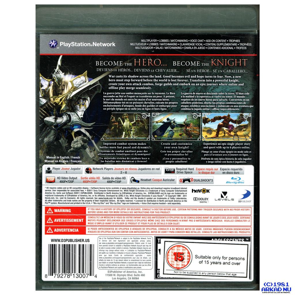 The epic role-playing adventure White Knight Chronicles transforms the player into a seven-meter giant warrior. Create and Customize your own incredible attack style and fight huge enemies as an awesome White Knight in an epic role-playing adventure. Create your own character, face colossal enemies as you search for Princess Cisna, and then continue the story on PlayStation Network with other players. Sky across the realm of Balandor or join forces with up to three players online. Discover more missions, engage in fierce collaborative battles, and explore a breathtaking medieval fantasy world with others. -Take the adventure online with three guys and enjoy exciting quests or free socializing -Get on a huge single player mission.
