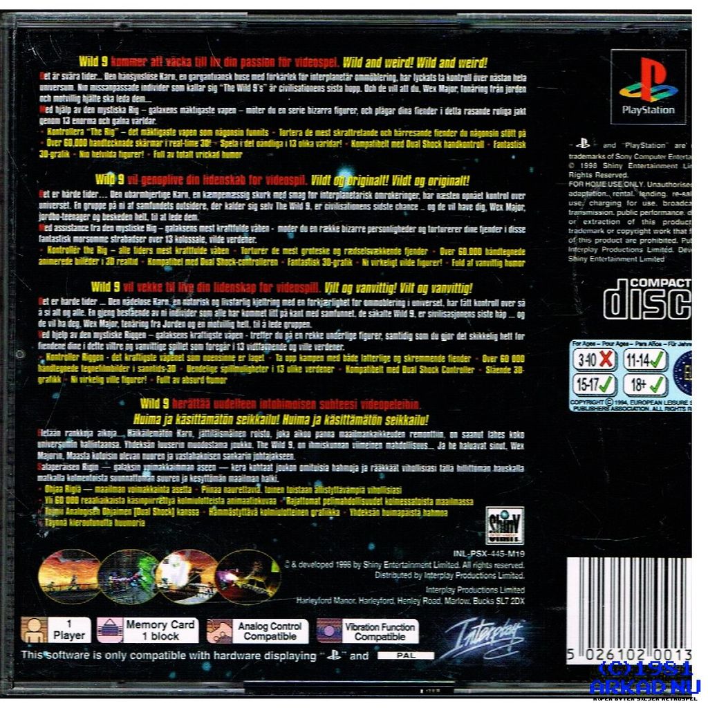 Wild 9, known as Wildroid 9 in Japan, is a 2.5D platform video game for the PlayStation. The game was designed by David Perry, developed by Shiny Entertainment, and published by Interplay Entertainment; all of which were parties involved in Earthworm Jim series of video games. The game was released in North America and Europe in September 1998, and in Japan in February 2000.
