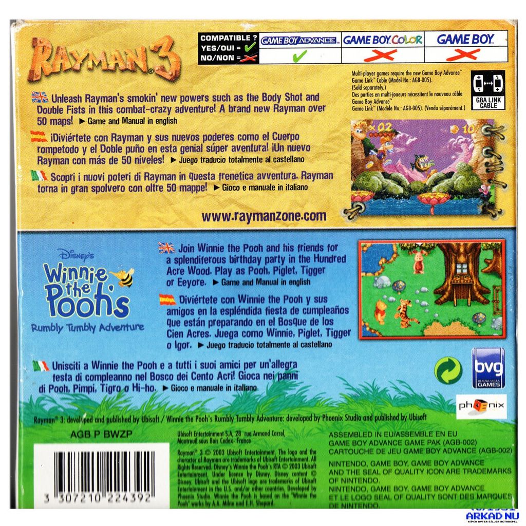 Beskrivning av WINNIE THE POOHS RUMBLY TUMBLY ADVENTURE + RAYMAN 3 GAMEBOY ADVANCE GBA