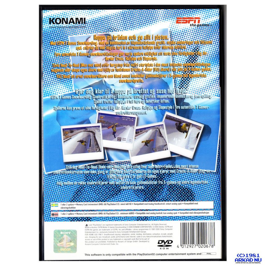 ESPN Winter X Games Snowboarding is a snowboarding game based on the ESPN Winter X Games event. The game's license allows for a multitude of professional snowboarders, boards and apparel to be present within the game. Game modes include Snowboarder, Session, Free Ride and Movie mode. Snowboarder is a career mode where you have to perform in games that are taken directly from the Winter X Games event itself and include: Big Air, Boarder Cross, Halfpipe and Slopestyle. Each of these games can be played with up to four players or AI opponents in X Games and Session modes. Free Ride allows you to do whatever you want in on a large slope and challenge friends to races. Movie mode is a collection of movies from professional snowboarders.