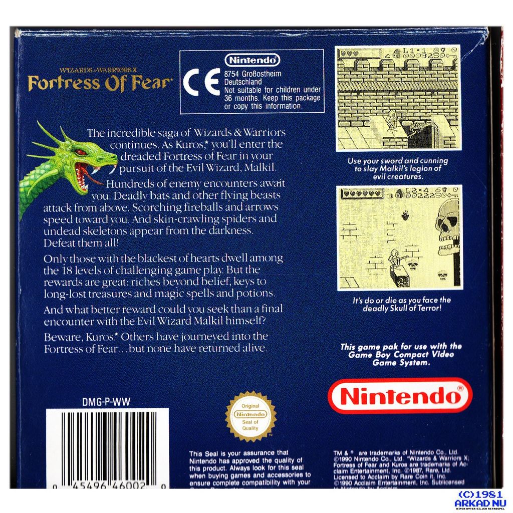 Beskrivning av WIZARD & WARRIORS X FORTRESS OF FEAR GAMEBOY