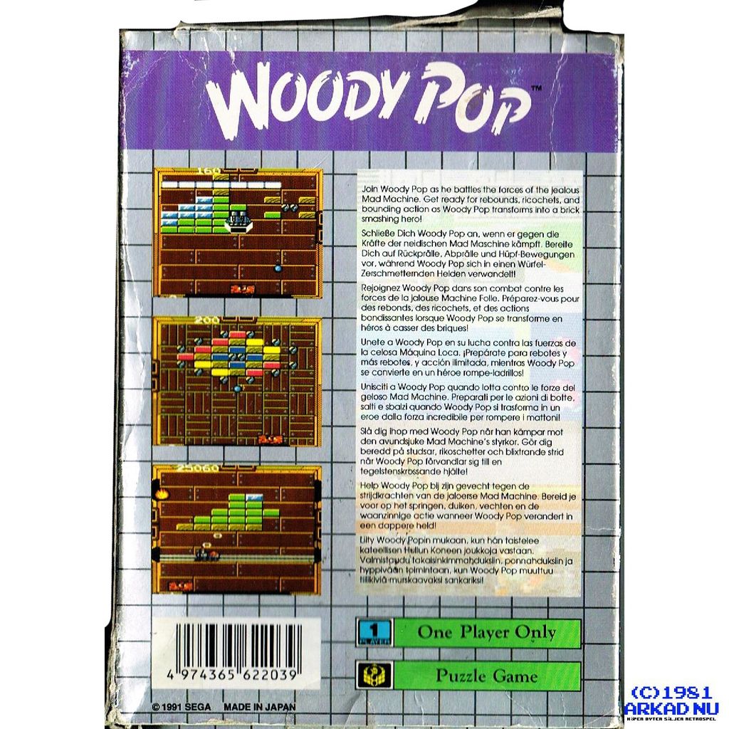 Woody Pop, is a ball and paddle game similar to the likes of Breakout and Arkanoid It was originally released exclusively in Japan for the Sega Master System in 1987, before being given an international release on the Sega Game Gear in 1991. The Master System version of the game is designed to be used with the Paddle Control, and will not function correctly with any other controller. It would be the last game released in Japan with the Mark III branding and on a My Card.