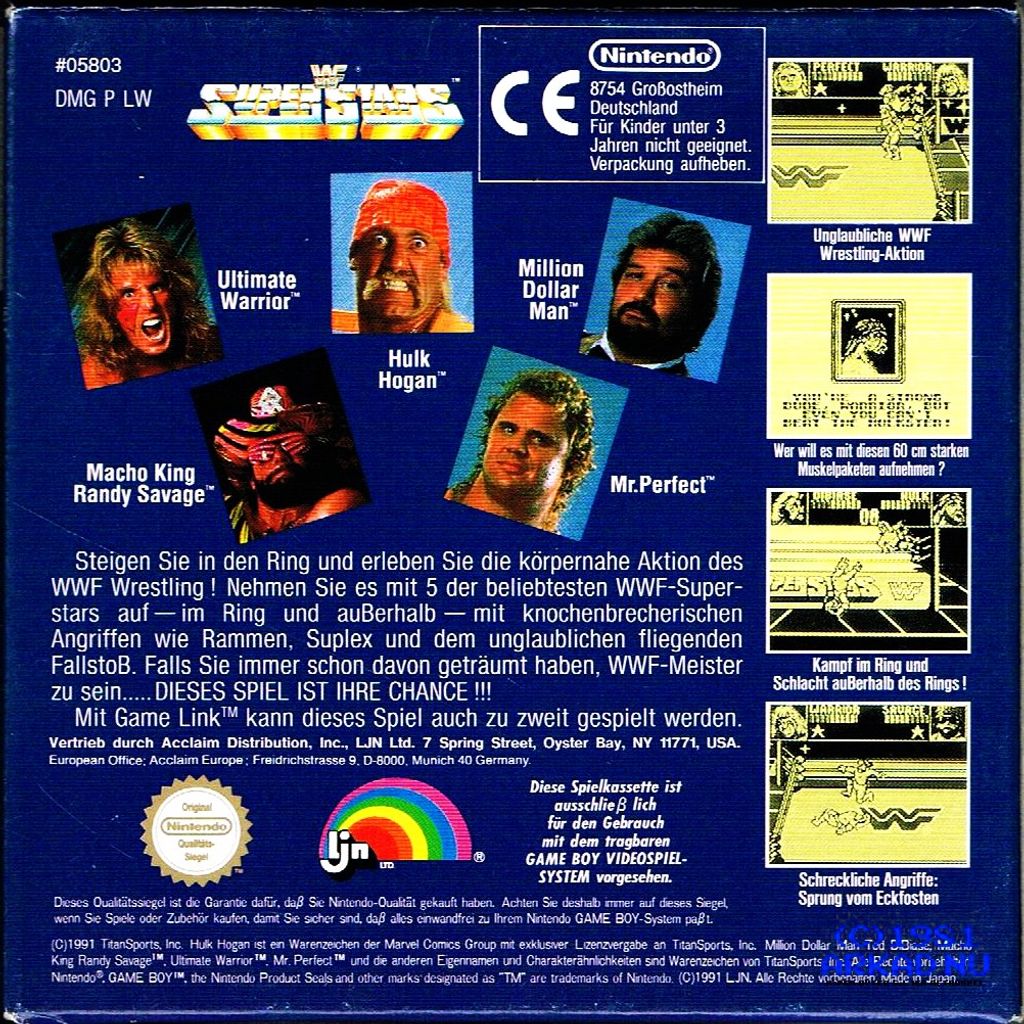WWF Superstars is a video game released on the Game Boy handheld console by Acclaim Entertainment, based on the WWF's syndicated television show of the same name. This game was the first WWF/E game for the Game Boy system.