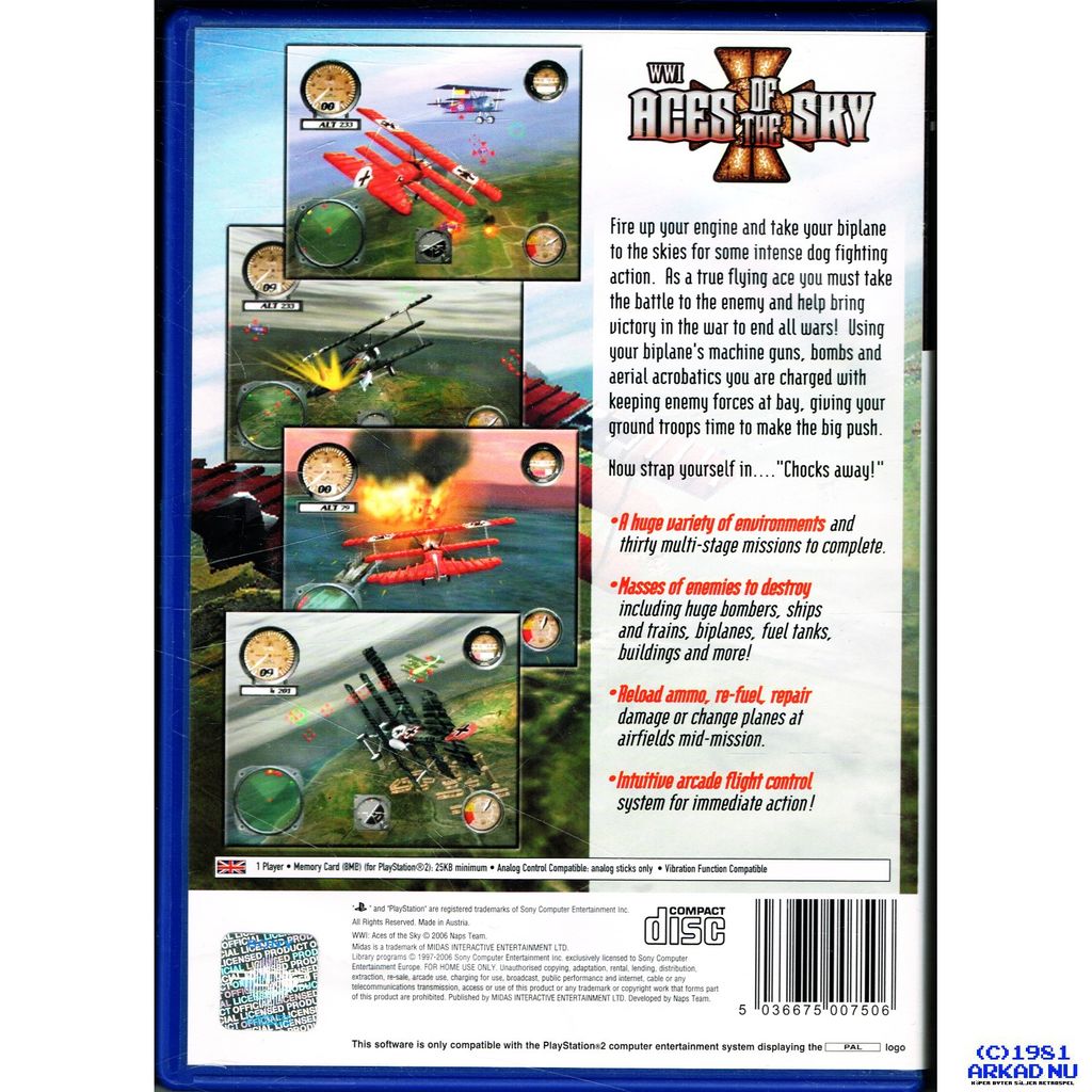 Beskrivning av WWI ACES OF THE SKY PS2