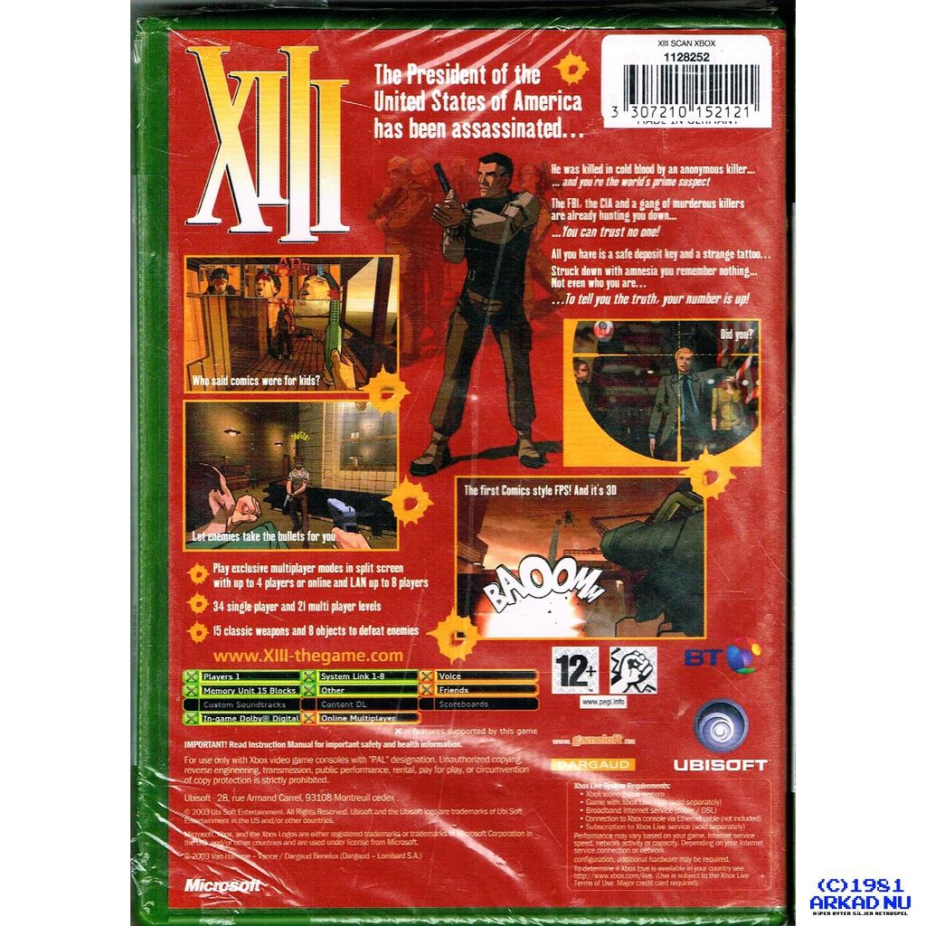 Intrigen i spelet koncentrerar sig på huvudkaraktären som har vaknat upp på en strand med minnesförlust. XIII är unikt i det avseendet att det till viss del påminner om serien i sin grafiska utformning då spelet använder sig av cel-shading. Detta inberäknar dessutom ljudeffekterna vilka visar sig som ord i bubblor.