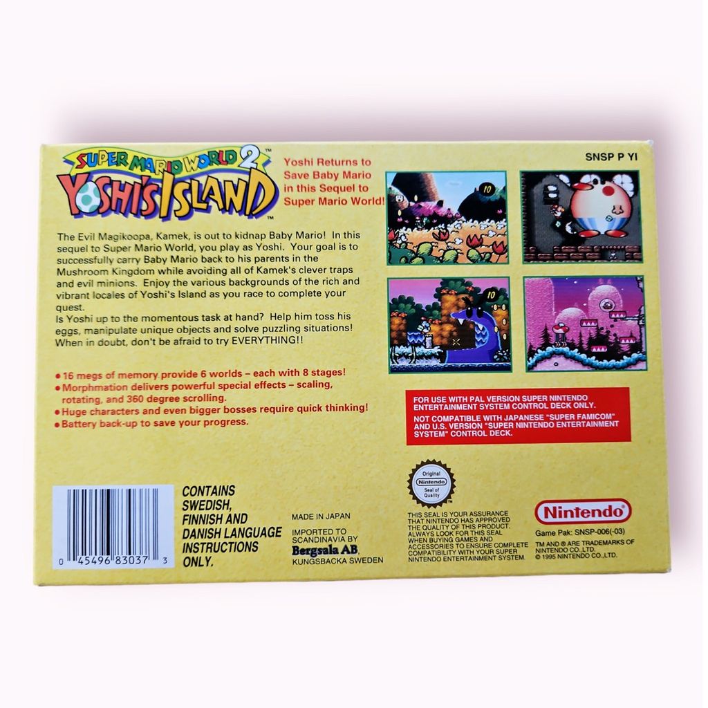 Beskrivning av YOSHIS ISLAND SUPER MARIO WORLD 2 SNES SCN