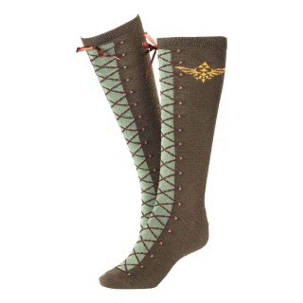 Nintendo Zelda Knästrumpor är ett par snygga strumpor som är inspirerade av Links klädsel i spelserien Zelda. De är knälånga, går i 2 gröna nyanser, har ett