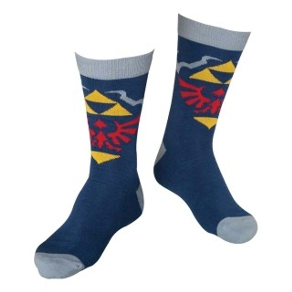 Zelda Strumpor Marinblå är tillverkade i 78% bomull, 20% polyester och 2% spandex. Strumporna är marinblå med grå tår och mudd. På framsidan av skaftet finns