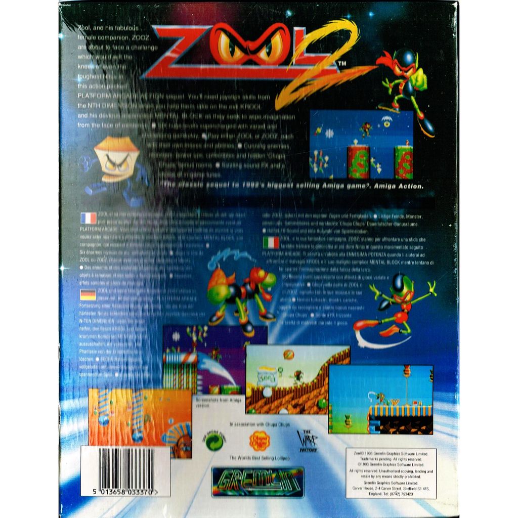 Zool 2 is the sequel to the platform game Zool: Ninja of the Nth Dimension, developed and published by Gremlin Graphics in 1993 for the Amiga, Amiga CD32, MS-DOS, and Atari Jaguar platforms.